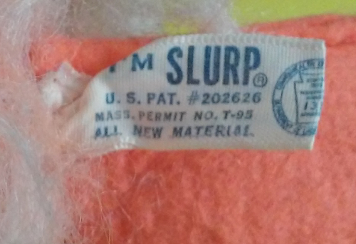 So, a little over five years ago I wrote (what I thought was) a throwaway blog post on this oddball stuffed animal from the 1960s called “Slurp” that I found at a thrift store. It was pretty difficult to find anything, but some Googling showed that it was produced by a company called Spectacular Products. Spectacular Products folded at some point and became Princess Soft Toys, a more traditional stuffed animal manufacturer that was a frequent staple of hospital and tourist trap gift shops. Since the writing of the original blog post, Princess Soft also dissolved in a complete mess of financial shenanigans. But that’s neither here nor there.