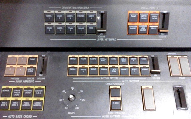 For today’s “Synthesizer Saturday” post, I wanted to drop off some photos of various aesthetically pleasing electronic organ “rhythm box” drum machines I’ve stumbled across on thrift store organs.